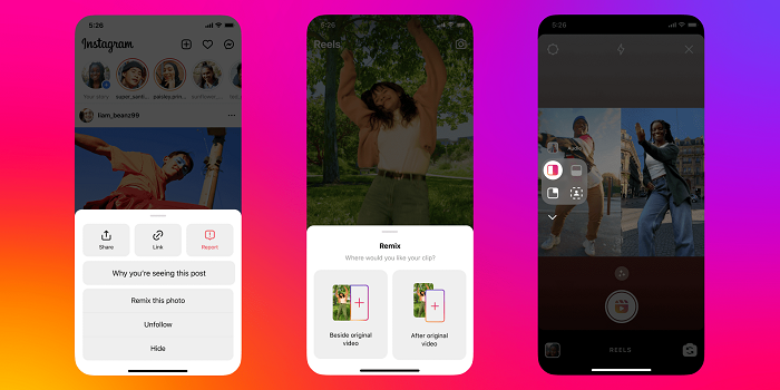 En primer lugar, Instagram agregará algunas opciones nuevas de Remix para brindar más formas de colaborar dentro de los clips de Reels: