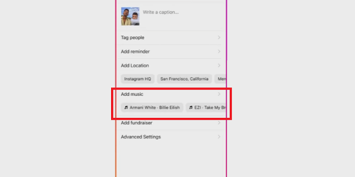 Como puede ver en la imagen de arriba, ahora ver una nueva opcin ‘Agregar msica’ en el flujo del editor de publicaciones, donde puede buscar una pista para agregar a su publicacin de fotos. Puedes elegir un segmento de entre 5 y 90 segundos de la cancin para usar, proporcionando contexto adicional y/o elementos atmosfricos a tu publicacin.