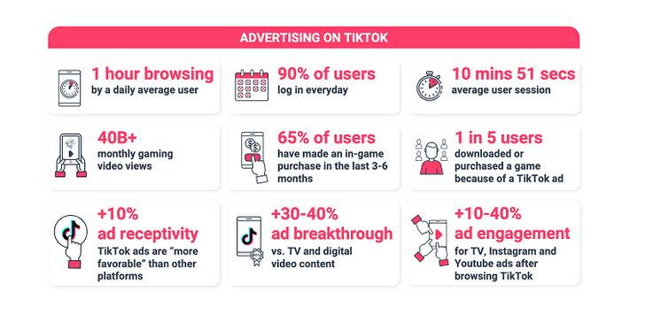Eso también se aplica a los juegos y la publicidad para los vendedores de juegos móviles, que es el enfoque de esta nueva descripción general de datos del equipo de Adquisición de clientes. Aquí. El equipo de CA ha descrito algunas estadísticas clave de uso de TikTok y notas para los vendedores de juegos móviles que buscan usar TikTok para promocionar sus productos.