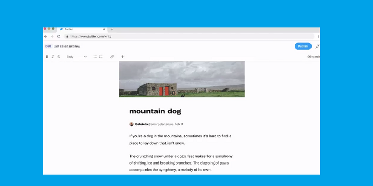 Eso alivia la necesidad de tomar capturas de pantalla de grandes fragmentos de texto y adjuntarlos a un tweet, o armar largas cadenas de tweets. La idea es que esto ayudar a los creadores de Twitter a centrar ms sus esfuerzos en la plataforma en s, en lugar de vincular a sus audiencias con otros anfitriones y plataformas para leer su contenido ms extenso.